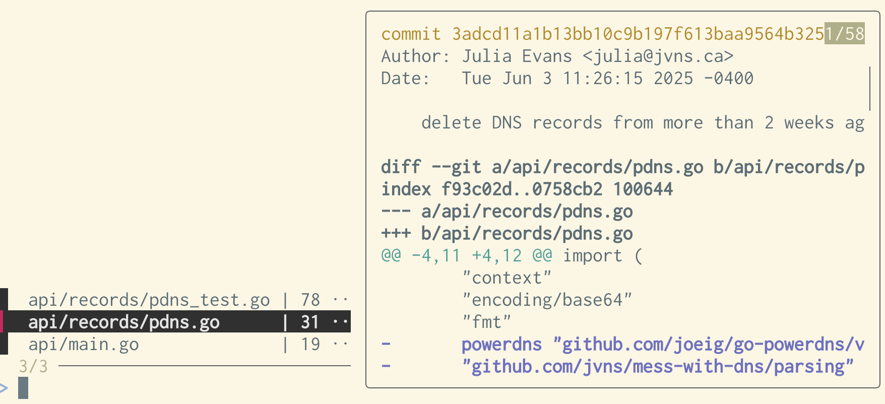 I think it’s really cool that you can use fzf (which is theoretically a search tool) to implement lots of UIs that aren’t doing search at all, like these two!